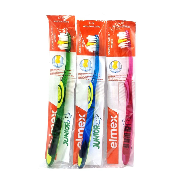 - Speziell entwickelt für Kinder von 6 bis 12 Jahren – perfekte Größe und Form für kleine Hände. ElmexJunior Kinderzahnbürste