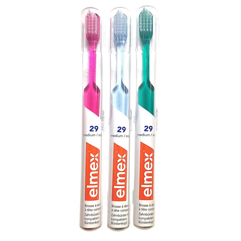 Die Elmex Zahnbürste hat eine optimale Erreichbarkeit auch schwer zugänglicher Stellen im Mund, während die medium Borsten Plaque effektiv entfernen, ohne das Zahnfleisch zu reizen. So vereint sie professionelle Pflege mit angenehmem Putzerlebnis.