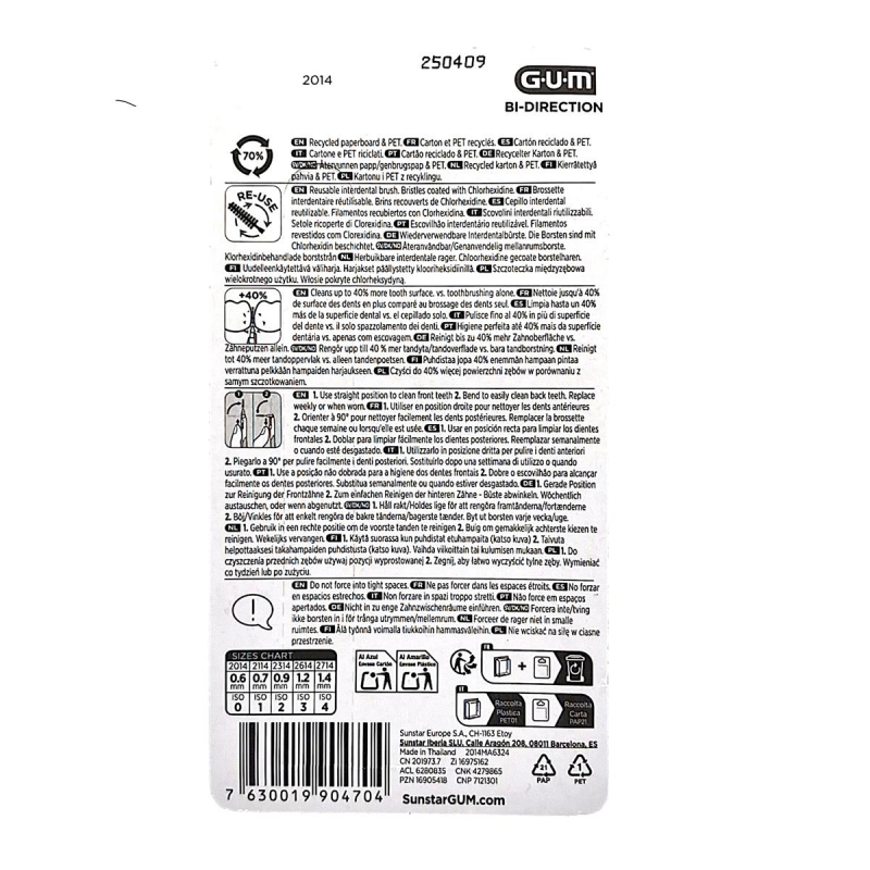 Mit der GUM Bi-Direction 0,6mm Interdentalbürsten genießen Sie eine besonders gründliche und schonende Reinigung Ihrer Zahnzwischenräume, auch an schwer zugänglichen Stellen wie den Backenzähnen. Das Besondere an der GUM Bi-Direction ist ihr um 90° abgewinkelter Bürstenkopf, der dank seines langen Griffs selbst die hintersten Zahnzwischenräume spielend erreicht. Der beschichtete Draht gewährleistet eine sichere Handhabung ohne Verletzungsrisiko. Besonders vorteilhaft ist die antibakterielle Chlorhexidin-Beschichtung der Borsten, welche zwischen den Anwendungen für Hygiene sorgt und somit das Risiko von Keimbildung minimiert. Ideal geeignet ist die Bürste zudem für Implantate sowie kieferorthopädische Apparaturen.