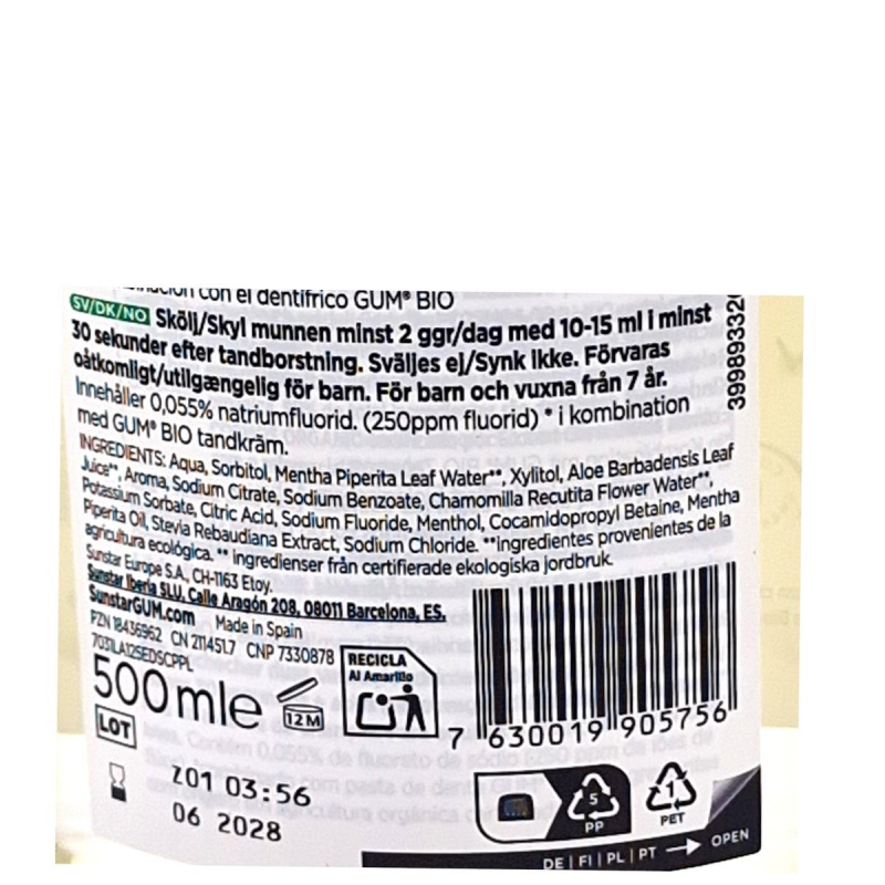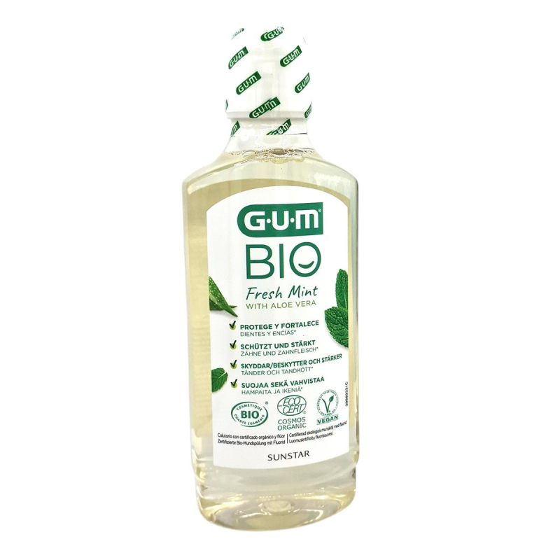 Die GUM Sunstar Bio Mundspülung enthält hochwertige Bio-Extrakte aus Kamille und Salbei sowie Xylitol zur Kariesprophylaxe. Die alkoholfreie Rezeptur sorgt für ein angenehmes Frischegefühl ohne Brennen.