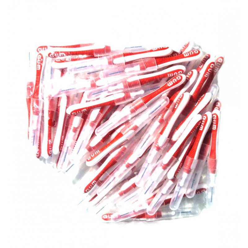 GUM Trav-ler Interdentalbürsten rot- 0,8 mm - 50 Stück im Beutel. Chlorhexidin - und nylonbeschichtete Interdentalbürsten haben einen antibakteriellen Schutz bis zu 2 Wochen. Der ergonomische Griff ist länger und flexibel mit rutschsicherer Fingerauflage. Die Bürste kann bis 90 Grad abgewinkelt werden. Mit Schutzkappe. Für Brücken, Implantate und Orthodontische Zahnapparaturen geeignet.
