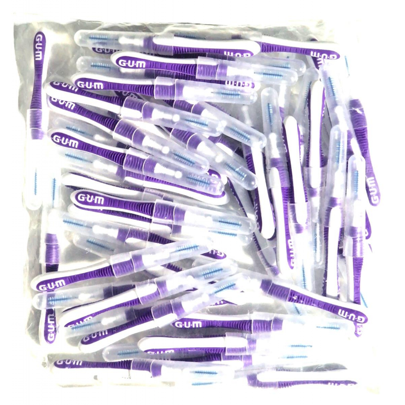 GUM Trav-ler Interdentalbürsten violett 1,2mm - 50 Stück im Beutel. Chlorhexidin - und nylonbeschichtete Interdentalbürsten haben einen antibakteriellen Schutz bis zu 2 Wochen. Der ergonomische Griff ist länger und flexibel mit rutschsicherer Fingerauflage. Die Bürste kann bis 90 Grad abgewinkelt werden. Mit Schutzkappe. Für Brücken, Implantate und Orthodontische Zahnapparaturen geeignet.
