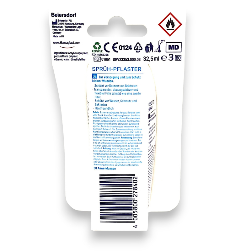Hansaplast Sprühpflaster bietet Ihnen schnellen und zuverlässigen Schutz bei kleinen Verletzungen. Mit nur einem Sprühstoß entsteht eine unsichtbare, flexible Schutzschicht, die Ihre Wunde vor Schmutz und Bakterien bewahrt und so die Heilung fördert. Das sanfte Spray schont die Haut und sorgt für ein angenehmes Tragegefühl ohne lästiges Abkleben oder Verrutschen.
