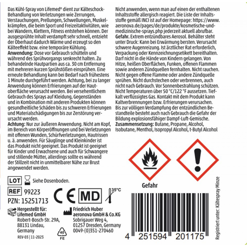 Inhaltsstoffe: Propan, Butan, Isobutan, Minzöl.