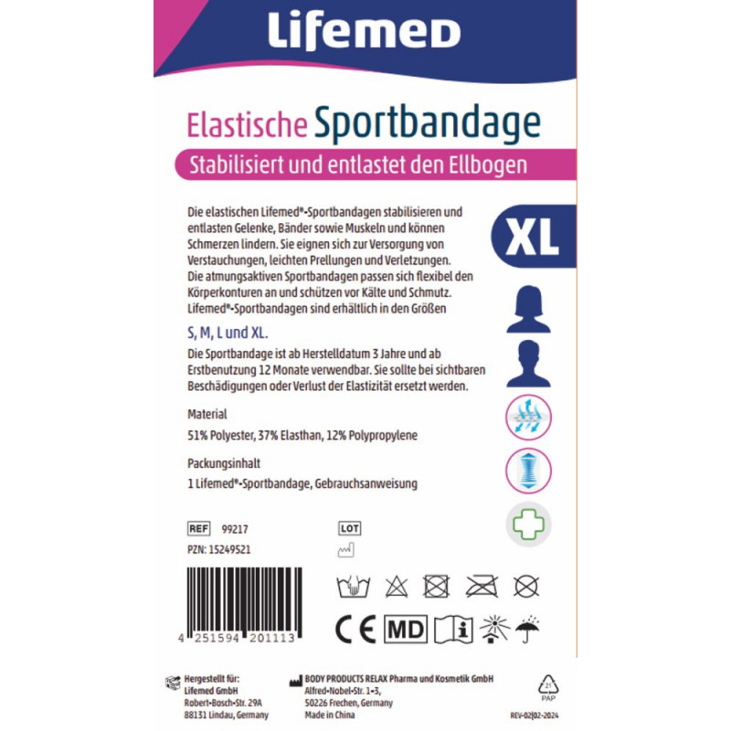 - Lifemed elastische Sportbandage bietet zuverlässigen Halt und optimale Stabilität für den Ellenschutz.