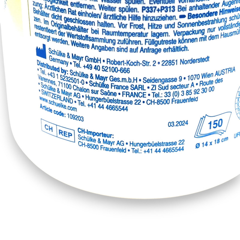 150 Schülke Desinfektionstücher. Mit Sicherheitsdatenblatt.
