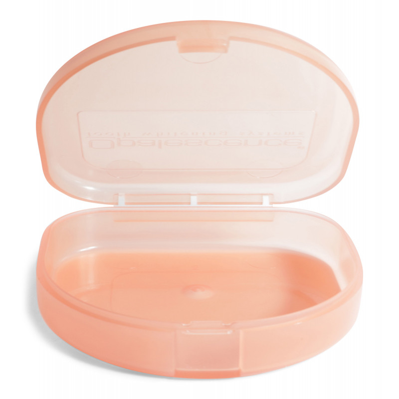 Aufbewahrungsbox von Opalescence in melone zur Aufbewahrung von Knirscherschienen, Bleachingschienen oder alle anderen Tiefziehschienen.Event. auch für Orthodontische Zahnapparaturen, dies ist eine sehr flache Dose.Sie kann auch für Sportmundschutz oder beliebig für Zahnpflegeprodukte für die Handtasche benutzt werden. Z.B für Zahnstocher oder Zahnseidesticks.Sehr flaches Design, in den Farben hellblau, mintgrün, melone.Eine hochwertige Aufbewahrungsdose von der Firma Opalescence.Die Außenmaße beträgt: Höhe 2 cm, Breite 8 cm, Länge 8 cm.