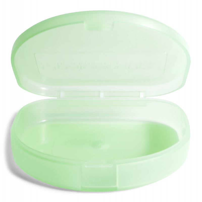 Aufbewahrungsbox von Opalescence in mintgrün zur Aufbewahrung von Knirscherschienen, Bleachingschienen oder alle anderen Tiefziehschienen.Event. auch für Orthodontische Zahnapparaturen, dies ist eine sehr flache Dose.Sie kann auch für Sportmundschutz oder beliebig für Zahnpflegeprodukte für die Handtasche benutzt werden. Z.B für Zahnstocher oder Zahnseidesticks.Sehr flaches Design, in den Farben hellblau, mintgrün, melone.Eine hochwertige Aufbewahrungsdose von der Firma Opalescence.Die Außenmaße beträgt: Höhe 2 cm, Breite 8 cm, Länge 8 cm.