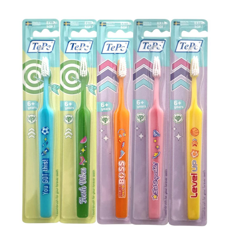 Die TePe Select Kids ist eine Kinderzahnbürste mit einem kleinen, schmalen zulaufendem Bürstenkopf für bessere Zugänglichkeit. Eine extra weiche Zahnbürste mit abgerundeten Borsten für eine schonende Reinigung für Kinder von 5-8 Jahren. Der Bürstenkopf kann unter heißem Wasser gebogen werden und beliebt sind die schönen Zoo Motive. Jungenfarben in : hellblau, dunkelblau , hellgrün. Mädchenfarben in: gelb, pink, rot.