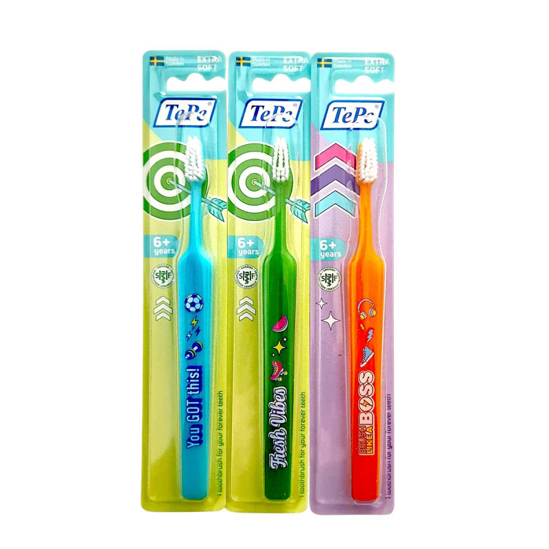 Die TePe Select Kids ist eine Kinderzahnbürste mit einem kleinen, schmalen zulaufendem Bürstenkopf für bessere Zugänglichkeit.Eine extra weiche Zahnbürste mit abgerundeten Borsten für eine schonende Reinigung für Kinder von 5-8 Jahren.Der Bürstenkopf kann unter heißem Wasser gebogen werden und beliebt sind die schönen Zoo Motive.Jungenfarben in : hellblau, dunkelblau , rot. grün.Mädchenfarben in: pink und gelb.
